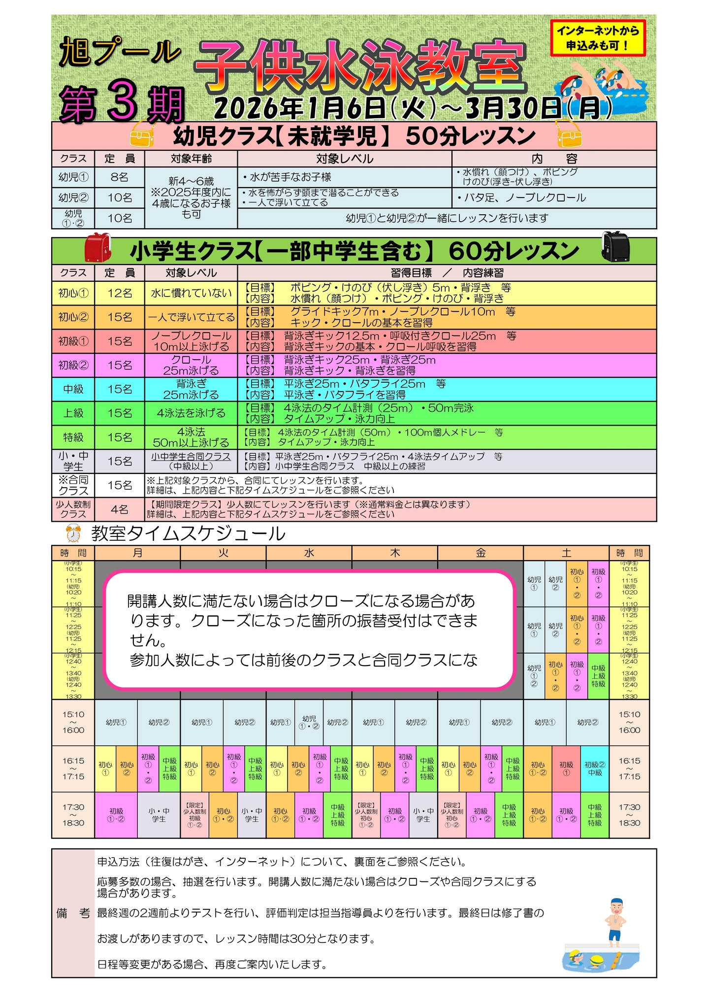 令和7年度4月より子ども水泳教室の級が変更になります。