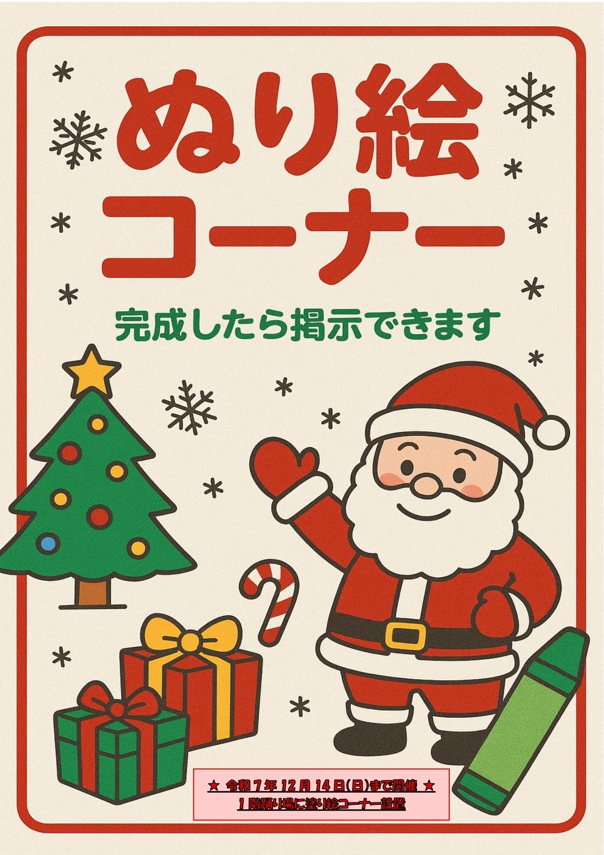 12月14日(日)まで1階踊り場に塗り絵コーナーを作りました🎉