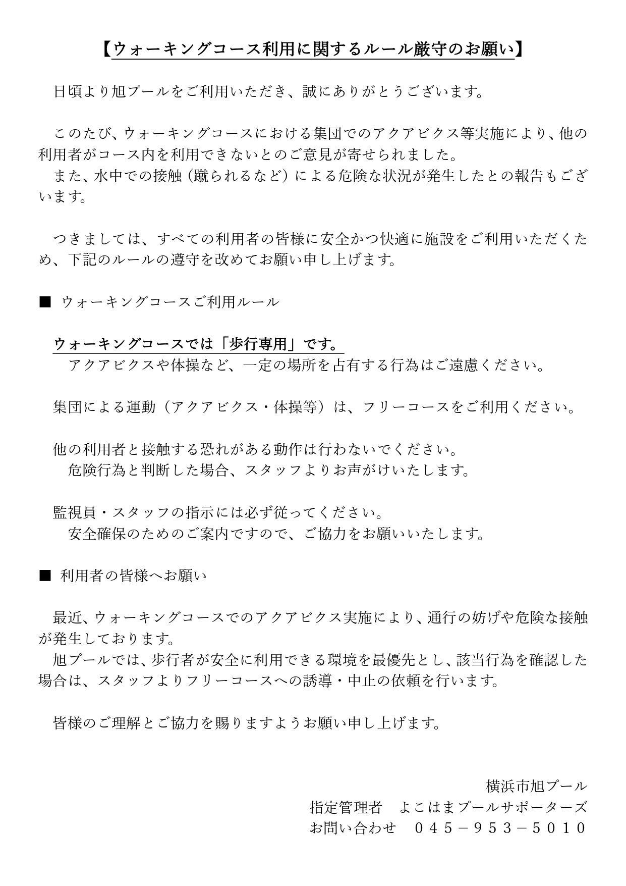 【ウォーキングコース利用に関するルール厳守のお願い】